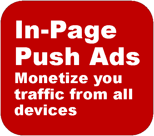 In-Page Push great for monetization In-Page Push ad is a small banner looking like a classical push message — but it doesn't require a user to subscribe to see it |